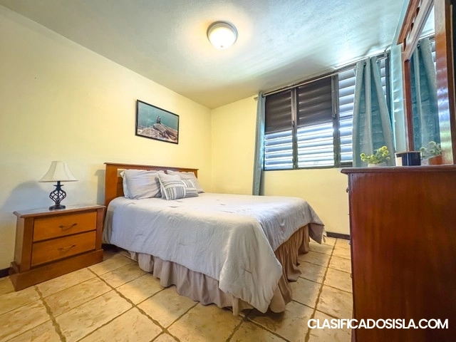 This is a lovely 3 bedroom penthouse unit nestled in the Hucares bay of Naguabo not too far from el Malecon. Private gated access to the community which has a pool, tennis/pickleball ct, basketball and gazebo to enjoy. Its a quiet town with great restaurants, bakeries and food trucks with conveniences such as grocery, pharmacy, banks and easy access on and off expressway. Only 50 mins from san juan and airport. The nightly price varies during the week but averages at $135 a night and different f...