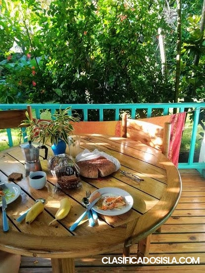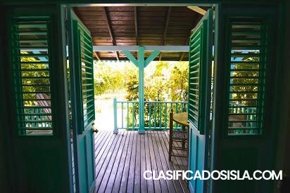Una hermosa villa completamente amueblada con dos dormitorios con camas delicadamente amuebladas, su baño, comedor con mecedoras para sus descansos en las tardes, tomando aire puro y fresco y viendo una espectacular vista!