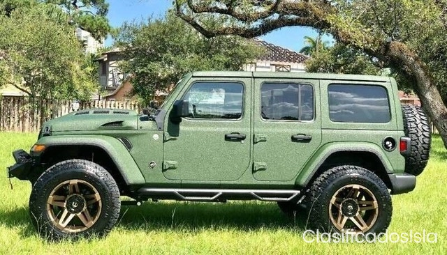 Este Wrangler 2020 es un ciclista magnífico de todos los días sentado en un elevador de 3.5 "de primera línea para acompañar sus pruebas de Patagonia de 37" y bronce. Las adiciones adicionales incluyen el parachoques delantero Stubby con luz LED integrada, así como un cabrestante XRC 9500, luces cúbicas, escalones laterales nerf, capó Predator a juego, parachoques trasero de acero y faros LED Halo controlados por aplicación.El interior es realmente digno de ver, ya que el cuero de grado marino de color canela marroquí Epice está resaltado con una puntada de diamante.Retire las puertas superior y superior y navegue por la playa en este Wrangler hecho a medida listo para enviar hoy.