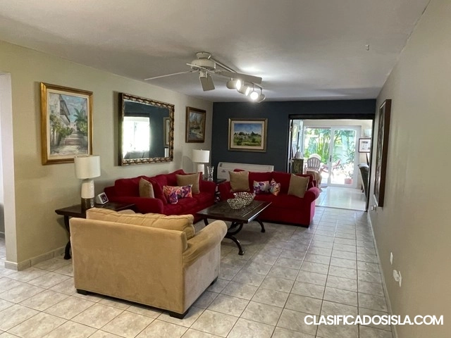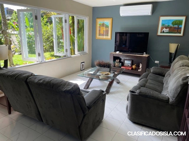 Vive con estilo y comodidad en esta espectacular residencia totalmente amueblada en la exclusiva urbanización Parkville. Cuenta con 4 habitaciones, 3 baños remodelados, cocina equipada con estufa de gas, nevera, microondas y lavaplatos, amplia sala y comedor, espacio ideal para family room, gimnasio u oficina, y cuarto de laundry con lavadora, secadora y freezer. Disfruta de su terraza techada y amplio patio. La urbanización ofrece seguridad 24/7, acceso controlado, canchas de tenis y baloncesto...
