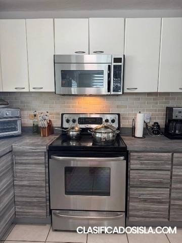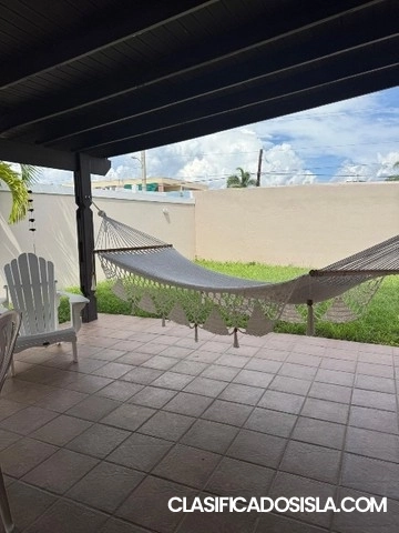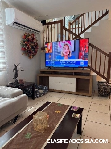 Exclusiva res. privada, 2 pisos, completamente amueblada y equipada, 4 amplias habitaciones, 2.5 modernos baños, fresca terraza en madera, cocina equipada con enseres en s/s, y 2 split units, 2 aires de pared, 4 abanicos de techo, patio completamente verjado y marquesina doble, más estacionamiento para 4 autos adiconales. Situada en tranquilo cul-de-sac en céntrica urbanización con seguridad, area de piscina, gazebo, cancha de baloncesto y parque pasivo. Facil y rápido acceso al Exp. Luis A. Fer...