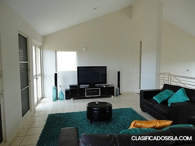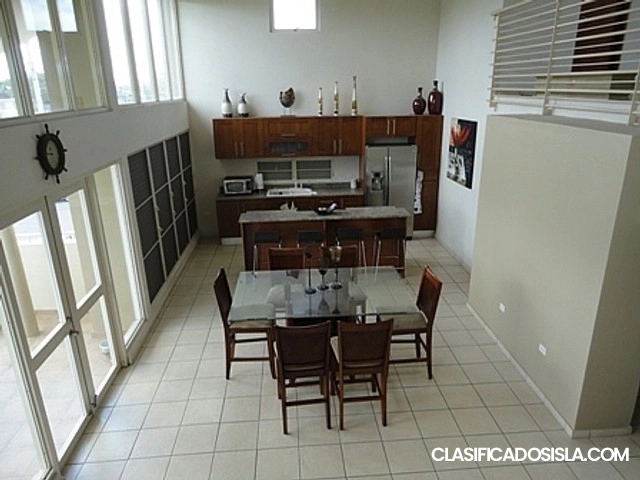 Precioso Penthouse con 3,000 p.c. Consta con sala, cocina, comedor, 3 dormitorios, 3 baños, family, laundry, terraza grande y balcón. Incluye: nevera, estufa, lavadora, secadora, calentador, 3 a/c, 3 plasmas: 2 en cuartos y 1 en family, juego de family, juego de comedor de 6 sillas y juego de sala pequeño. Tiene alarma, reja integrada y 2 estacionamientos. Se puede poner aires en áreas abiertas. Complejo consta con control de acceso, gazebo y piscina. Para citas llamar al 787-448-2580