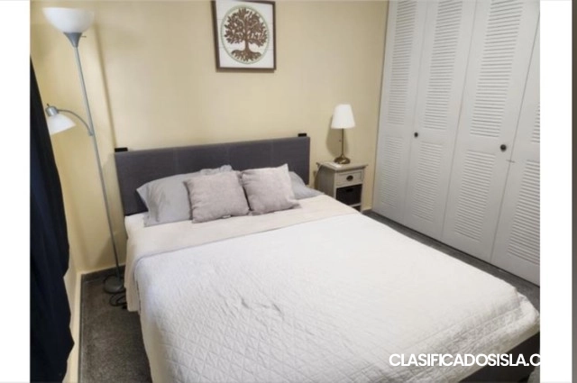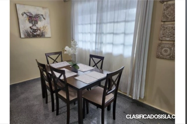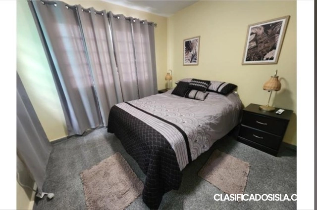 Se renta apartamento completamente amueblado en segundo nivel. Consta de tres habitaciones, 1 baño, sala-comedor-cocina, lavadora y secadora, no incluye agua ni luz. No se permite mascotas. Estacionamiento en los alrededores.(AREP235)