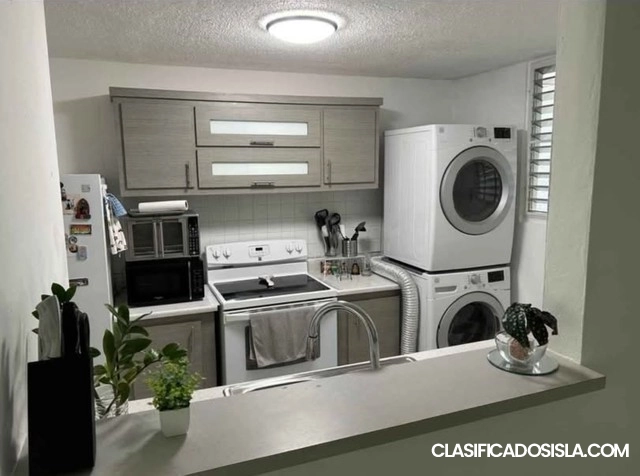 Se alquila condominio remodelado con control de acceso y piscina en Parque de Pontezuela Carolina. Segundo piso, Fresco. Estacionamiento. Solo 8 minutos de Base Muñiz. Cuenta con 3 habitaciones, 1 baño, sala, comedor cocina, combo lavadora secadora, aire en habitación master, 4 abanicos de techo, balcon mira hacia area verde sin casas. La piscina es heated a peticion. Se requiere ingreso familiar de 3 veces el cañon de arrendamiento, seguro social para verificar crédito, referencias y deposito ...