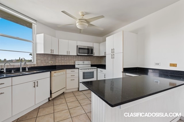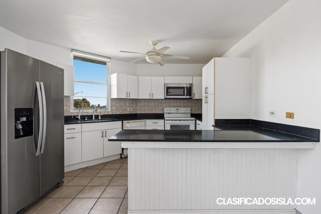 Amplio apto a nivel de parking con unos 5 escalones. Equipado con nevera, microondas, estufa, calentador y 3 unidades de aire. Cuenta con 2 parking (1 bajo techo). Excelentes condiciones. No inc. agua/luz. No mascotas. Llame para cita.