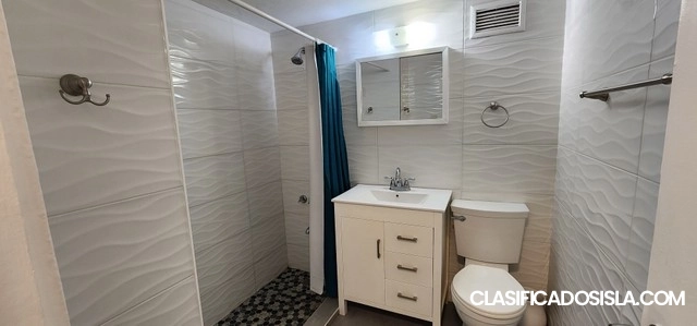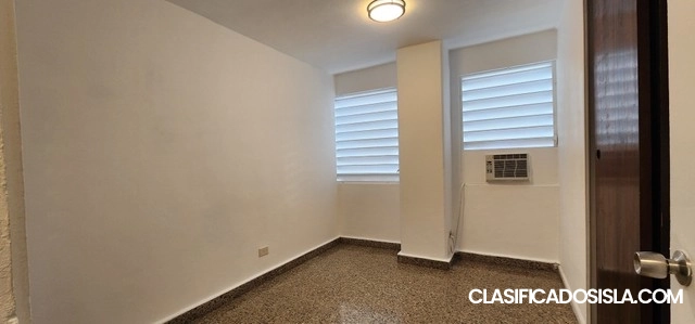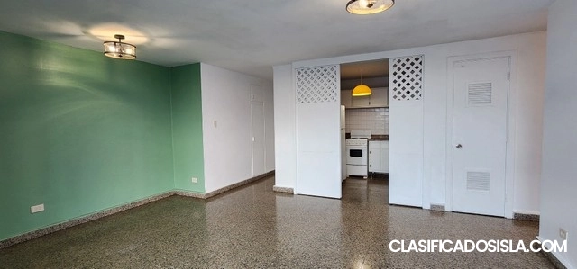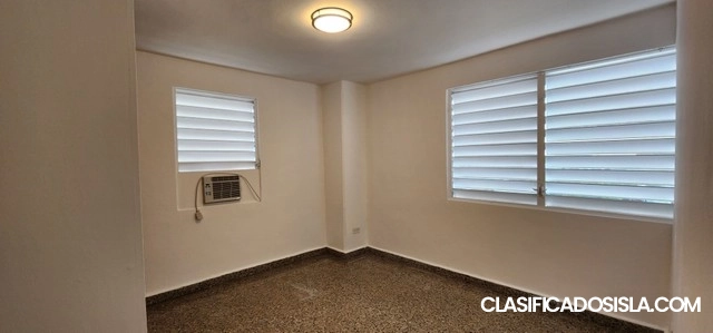 Apartamento de esquina, 3 habitaciones, 1 baño, cocina, sala comedor, balcón, vista panorámica hacia San Patricio y la bahía, dos estacionamientos, control de acceso, guardia 24 horas, céntrico, buen vecindario, cerca del Bosque San Patricio y la Avenida Roosevelt. Incluye servicio de agua, estufa, nevera, calentador de agua, aires y tormenteras. $1500/m. Info: 787-674-5422.