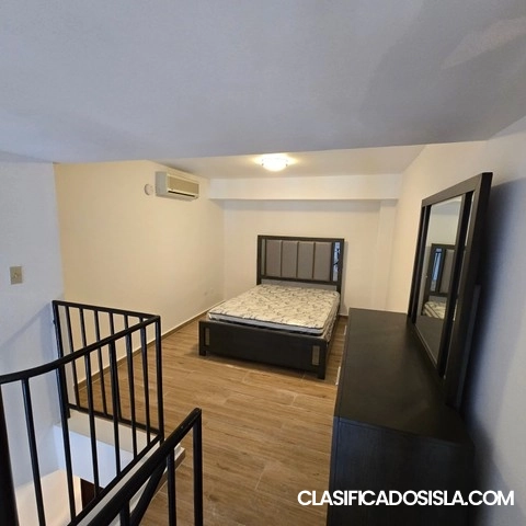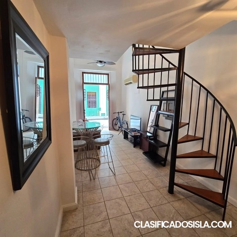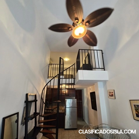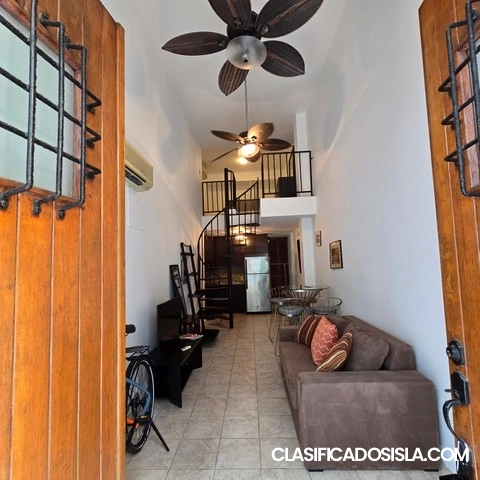 Loft type apartment in Tetuan street, which is a great location, since it has many restaurants and coffee shopsminutes away. Fully furnished, just bring your clothes, two a/c's in the property, washer/dryer combo machine, locationideal to explore the historic neighborhood of old San Juan. Building has a very active HOA, which is alwaysmaintaining the building. No short term rentals allowed, so it provides the atmosphere of a settled community.Building has emergency genarator and water atnk which...