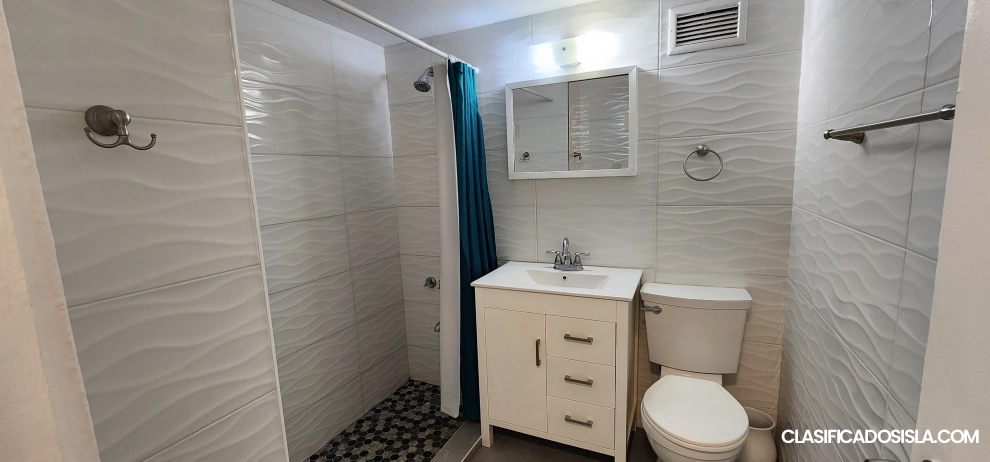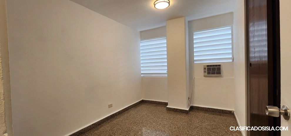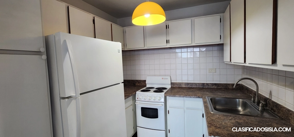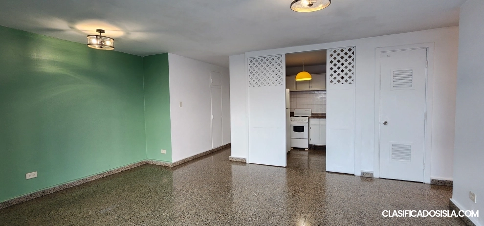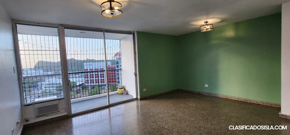Apartamento de esquina, 3 habitaciones, 1 baño, cocina, sala comedor, balcón, vista panorámica hacia San Patricio y la bahía, dos estacionamientos, control de acceso, guardia 24 horas, céntrico, buen vecindario, cerca del Bosque San Patricio y la Avenida Roosevelt. Incluye servicio de agua, estufa, nevera, calentador de agua, aires y tormenteras. $1500/m. Info: 787-674-5422.