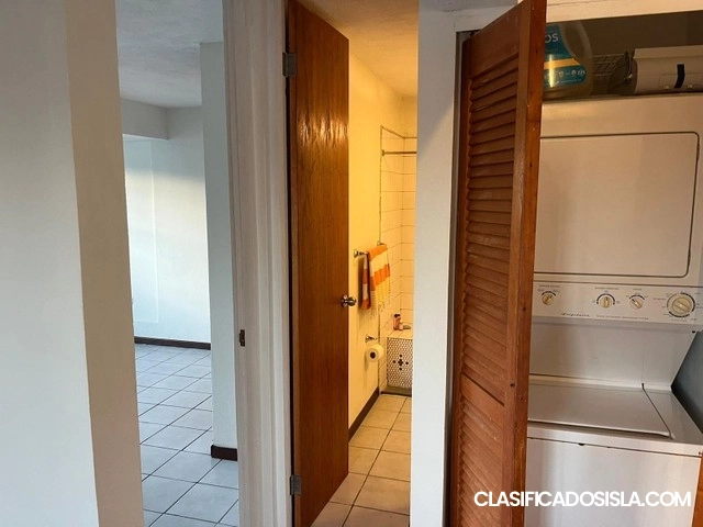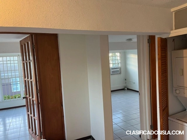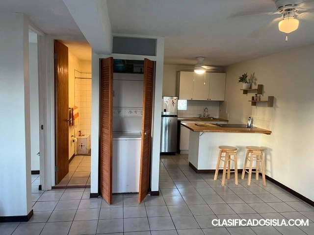 Este dulce e ilumidado apartamento queda en un 2ndo piso del Condominio Miel de 8-apartamentos en area tranquila, de poco transito. A tres cuadras de la playa Ocean Park. Tiene muchas ventanas y puertas francesas por lo que entra mucha luz natural. Un dormitorio con a/c inverter mas otro cuarto con doble puertas francesas que pudiera ser family-room, cuarto de huspedes u oficina. La cocina es abierta hacia sala/comedor. Equipado con nevera, estufa, lavadora/secadora dentro del apt. abanicos de t...