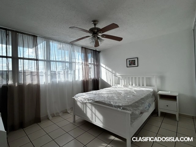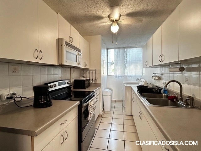 Apartamento en segundo nivel, cuenta con 3 habitaciones, 2 baños y 2 estacionamientos.Incluye enseres eléctricos: estufa, microondas, nevera, lavadora, secadora, aires acondicionados y abanicos de techo.El apartamento puede rentarse amueblado si el inquilino así lo desea; incluye mueble de sala, mesa de comedor y dos camas con sus matress. (Si no se necesitan, se remueven antes de la ocupación). La comunidad ofrece cancha de baloncesto, cancha de tenis, piscina y estacionamiento para visitantes....