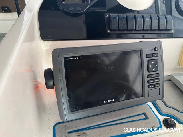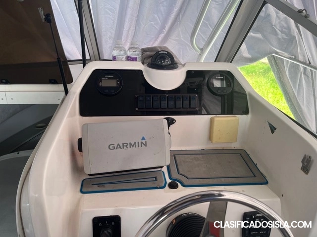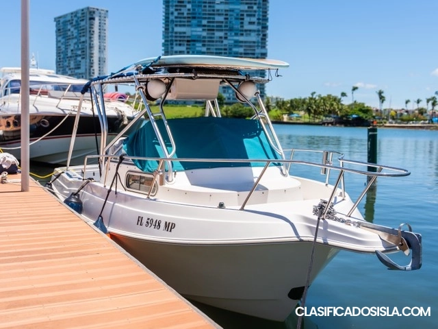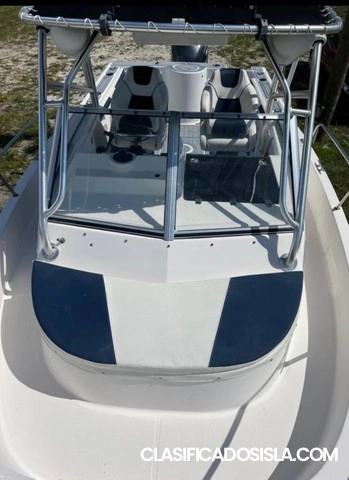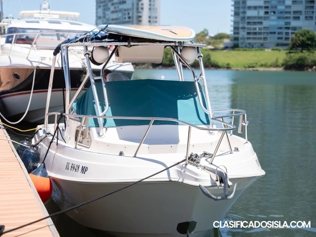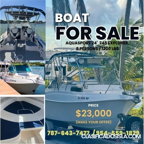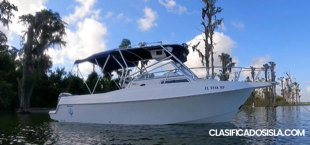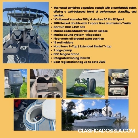 The hull of the Aquasport 245 Explorer is constructed from high-quality fiberglass, providing reliable strength and stability even in choppy conditions. Its deep-V design ensures a smooth and efficient ride, while the wide beam offers exceptional stability and ample deck space for fishing. The cockpit is thoughtfully laid out, featuring molded-in rod holders and plenty of storage compartments for tackle and gear. A hard top with rocket launchers and a cockpit cover keeps you high and dry. Angler...