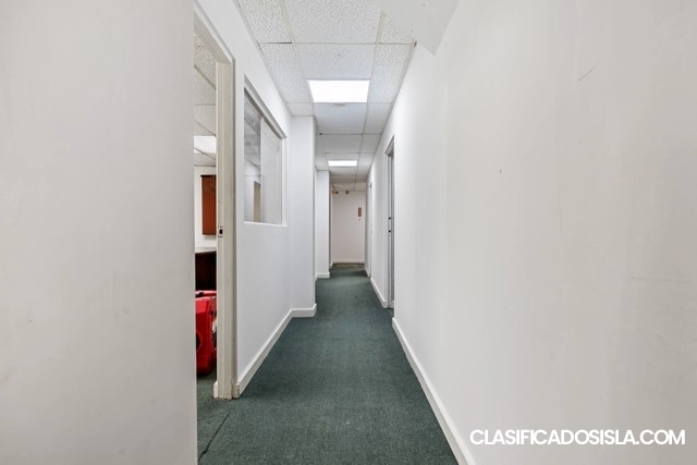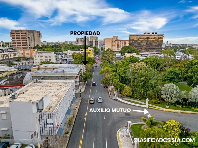 Amplio espacio comercial anteriormente utilizado por el Banco de Sangre de Puerto Rico, ubicado al cruzar la Ave. Ponce de León del Hospital Auxilio Mutuo. Cuenta con 2,500 p.c actualmente dividido en área de recepción, 11 oficinas, salón de conferencia y 3 baños. Llame para cita.
